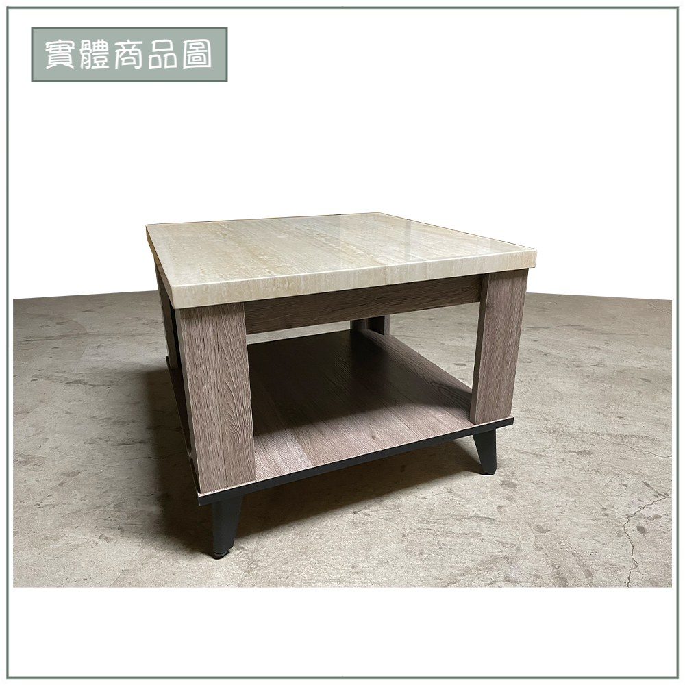 『凱熙灰橡色小茶几以清新的仿大理石紋面和實用的方形雙層結構,提供一個清爽、有秩序且充滿品味的角落,輕鬆點亮您的居家空間』