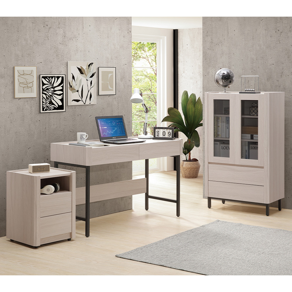 寬敞的桌面可以放置電腦、檯燈和工作用具;桌面下方設置兩個抽屜,方便收納文具、文件等物品,讓桌面保持整潔,提高工作品質及效率。
