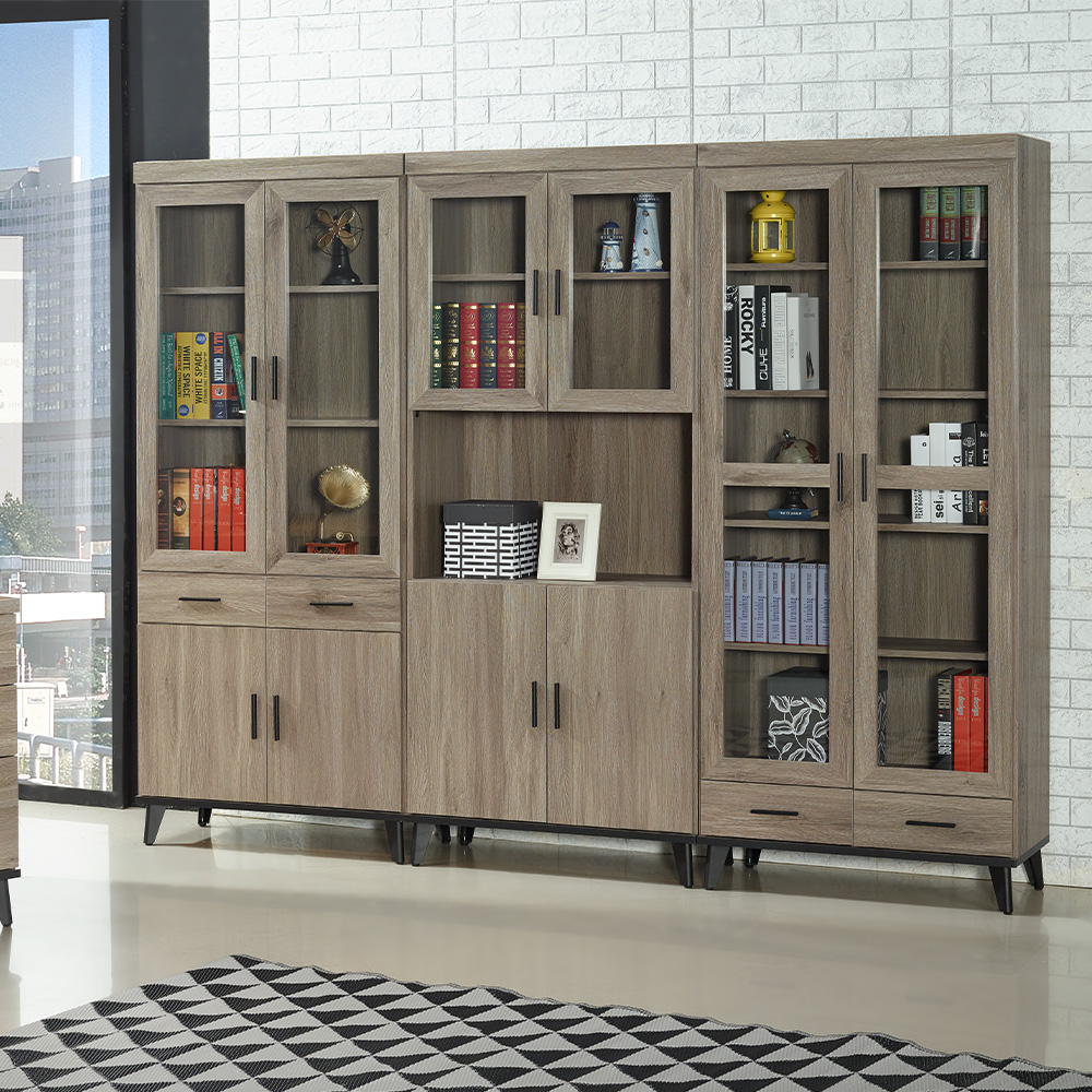 多樣化收納空間:豐富的儲物配置,上層玻璃門展示櫃,是展示收藏書籍或收藏品的最佳區域;中間寬敞的開放空間,方便隨手取放經常使用的物品,也可以搭配收納盒,增加靈活性;底部隱藏的收納空間可以放置不希望露出的物品,保持視覺上的整齊。