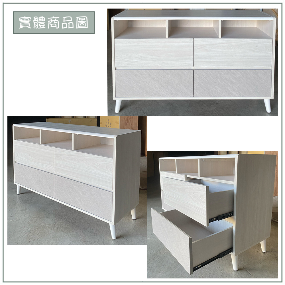 收納空間:上層開放格可折疊圍巾、毛衣;下層四抽可分類整理衣物及小物件;上方檯面可擺放燈具、香氛或裝飾物,為生活角落增添柔美的風景。