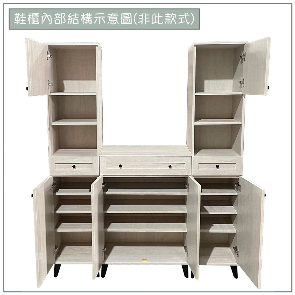 收納功能:櫃門內擁有多層儲物空間,層板可自由調整高度,能將鞋履及生活雜物隱形;中間開放式格位與多功能橫木掛勾,讓帽子、鑰匙與香氛小物隨手可取;三組獨立抽屜則可分類存放鑰匙、帳單等生活小物,完美實現了從大型儲物到細微配件的收納需求,讓空間井然有序。
