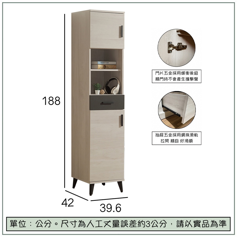 商品尺寸:寬39.6 x 深42 x 高188 公分