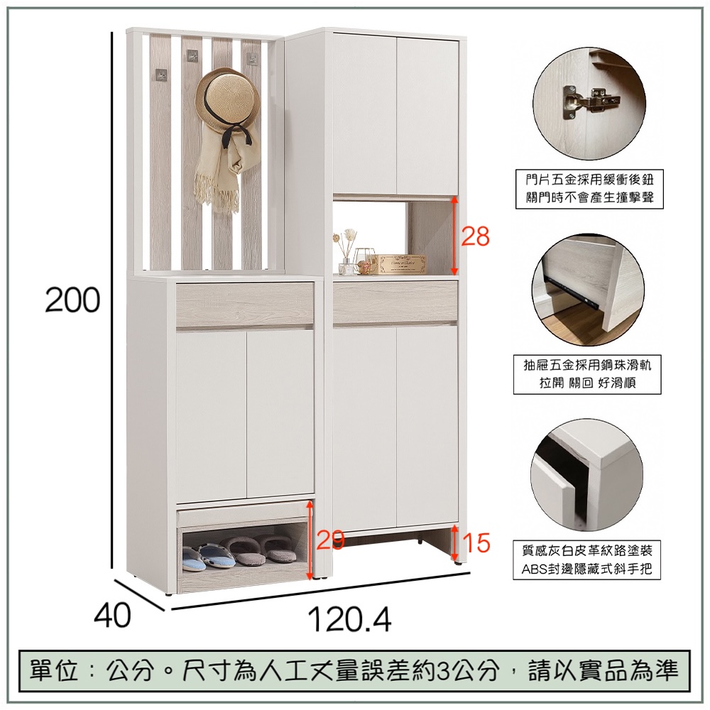 -商品為三件組,專人現場組裝定位商品尺寸:寬120.4 x 深40 x 高200 公分