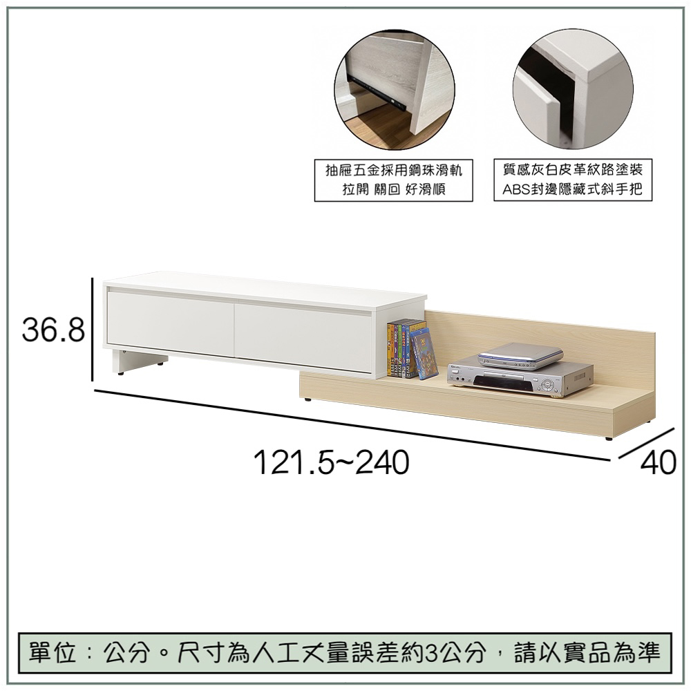 商品尺寸:寬121.5 x 深40 x 高36.8 公分