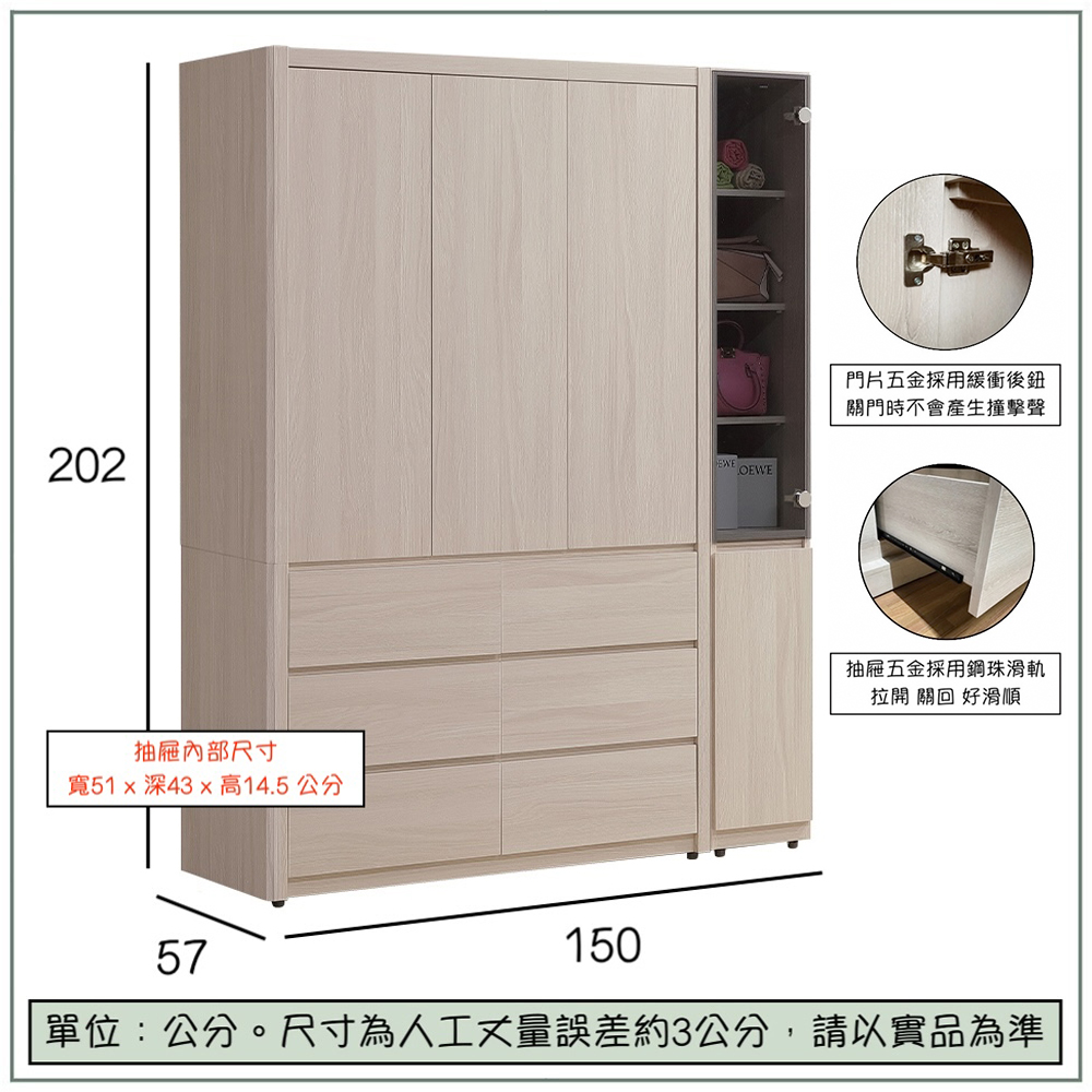 商品尺寸:寬150 x 深57 x 高202 公分