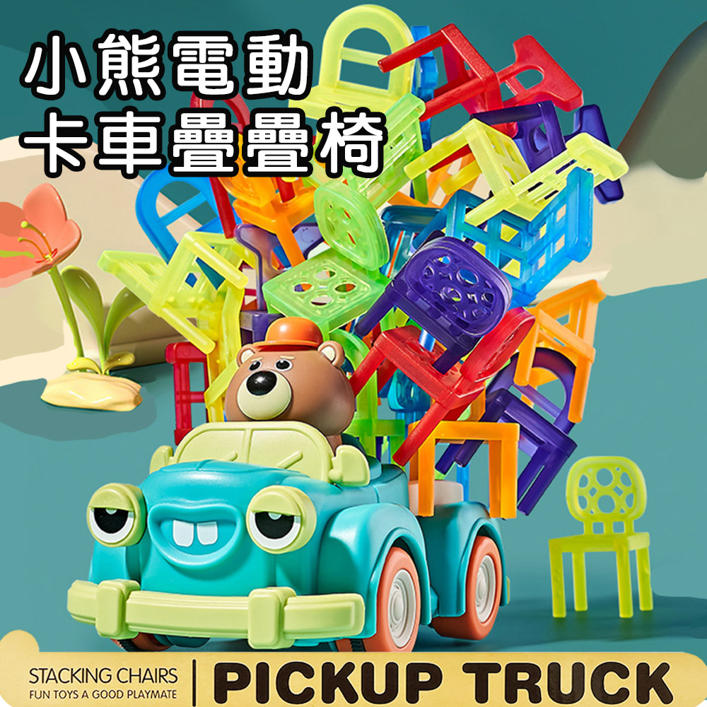 進階版的小熊卡車疊疊椅結合傳統椅子疊疊樂,玩法更多元有趣,