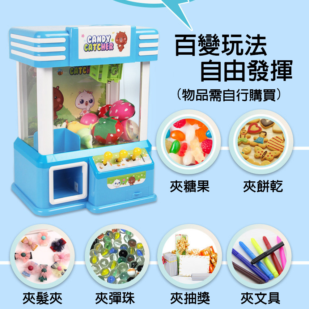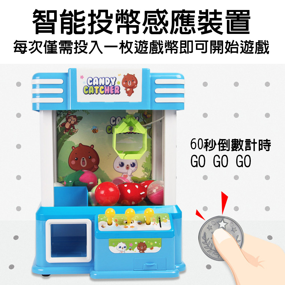 具備智慧投幣感應裝置,讓孩子體驗更真實的遊戲過程。三個靈活的搖桿設計,能輕鬆移動至目標物品上方,增添了更多的挑戰和趣味性。搭配趣味音效和絢麗燈光,讓每一個抓娃娃瞬間都充滿驚喜!快來帶給孩子無限的娛樂吧!