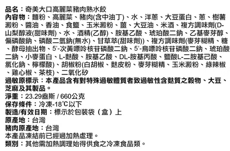 ◎Brand:奇美 ◎Specifications: 660g克 x 1 x 1Bag包