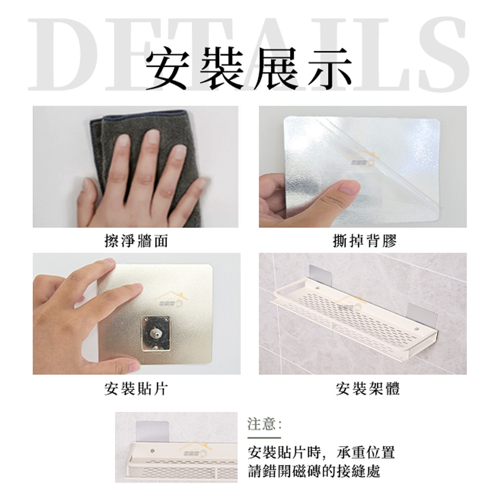 鏤空底座,瀝水通風不佔空間,時尚簡約,提升格調貼片防水、防油、防塵,牢牢貼合不鬆動免釘、免鑽、可重複使用,無痕多層膠