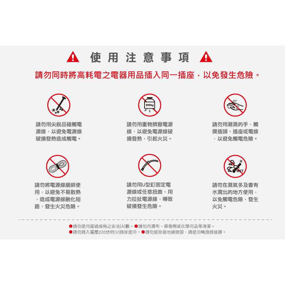 產品特色 過載自動斷電 插座防火PC料 雙層被覆電源線 高耐熱刃片基座 防誤觸內陷開關 符合最新國家法規 本產品已投保3000萬產品責任險 產品規格 規格:CK3166-06尺(1.8米) 額定容量:125VAC 15A MAX 1,650W 使用電壓:AC 110V 60Hz 線材規格:VCTF 2.0m㎡x3C 尺寸:長248x寬43x高30mm 材質:銅、阻燃防火PC料 包裝尺寸:寬12.5cm長37cm高5cm 包裝重量:515g 驗證登錄:R41087 保存期限:10年 產地:台灣