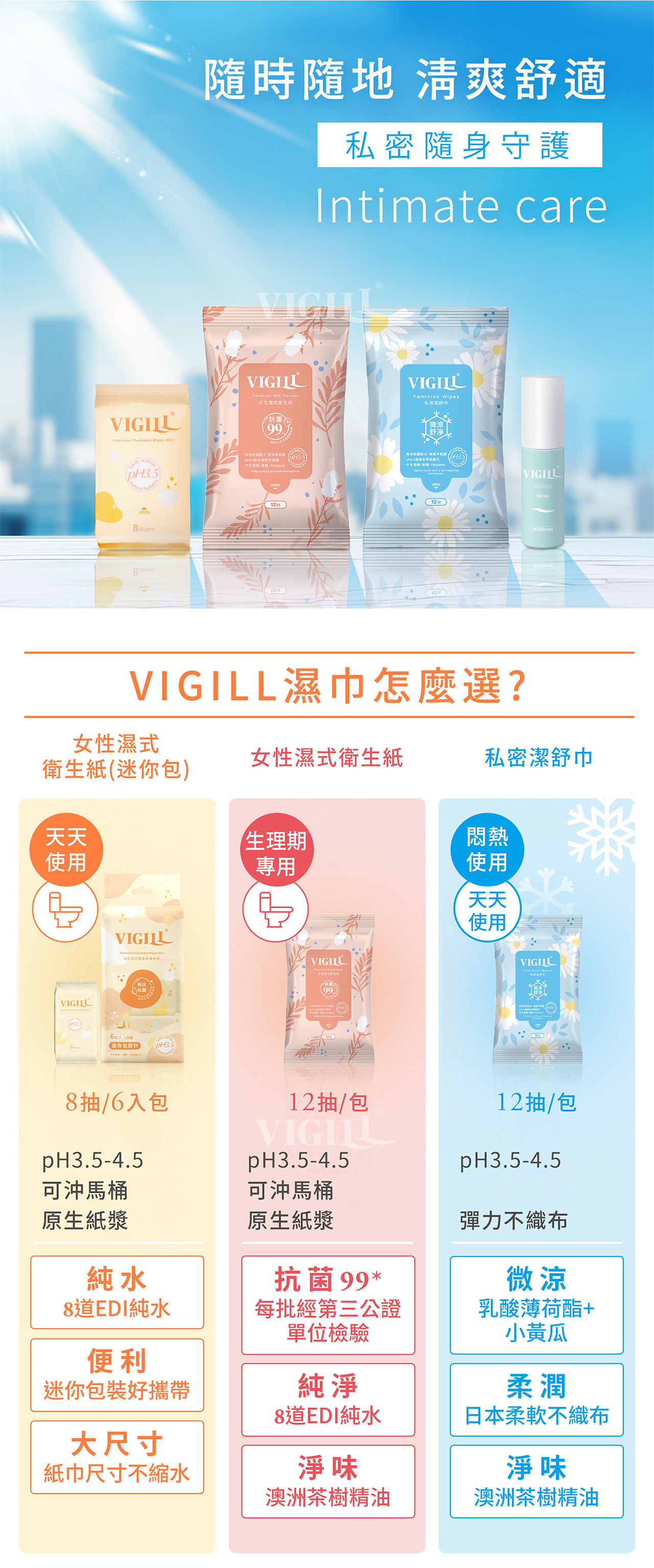 ●純水-8道純化過程的EDI 水,清爽超潔淨●乳酸-pH3.5~4.5女性私密微生態平衡●便利-迷你包裝好攜帶●大尺寸-紙巾尺寸不縮水