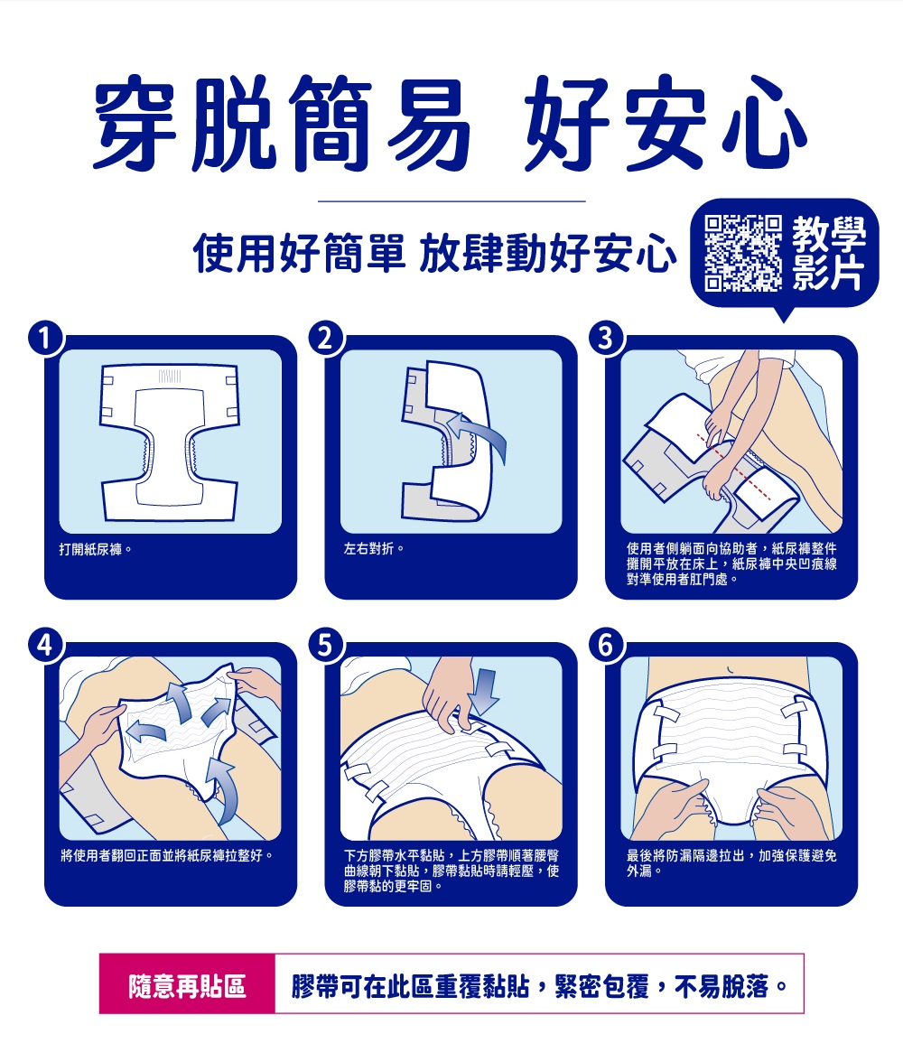 ※使用後請將尿褲上的排泄物,倒入馬桶清理後,將髒汙部份由外側向內側捲起,再行丟棄。