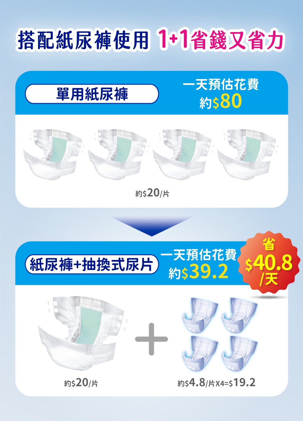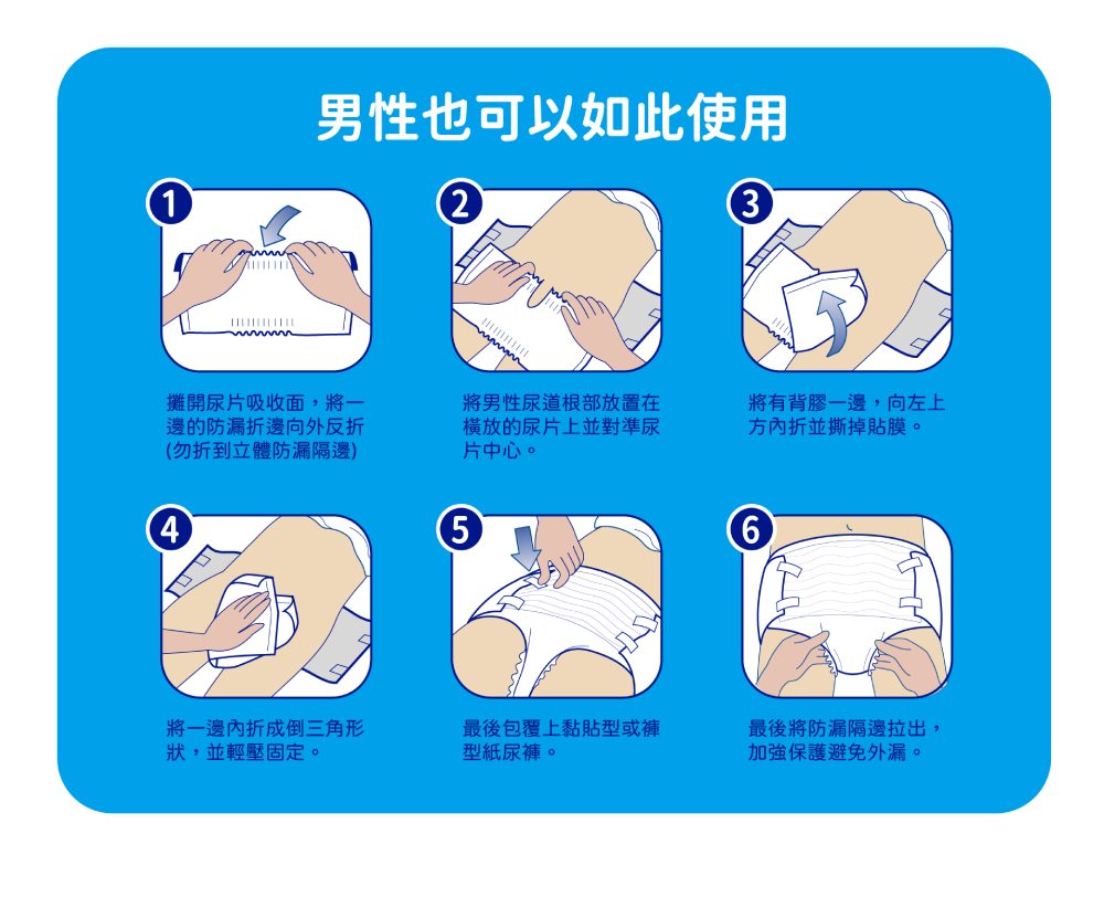 ※至少每三小時更換一次,以避免因太潮濕而引發其他不適。※使用後請將尿片上的排泄物,倒入馬桶清理後,將尿片由外側向內側捲起後,再行丟棄。※請勿將紙尿片丟入馬桶內。