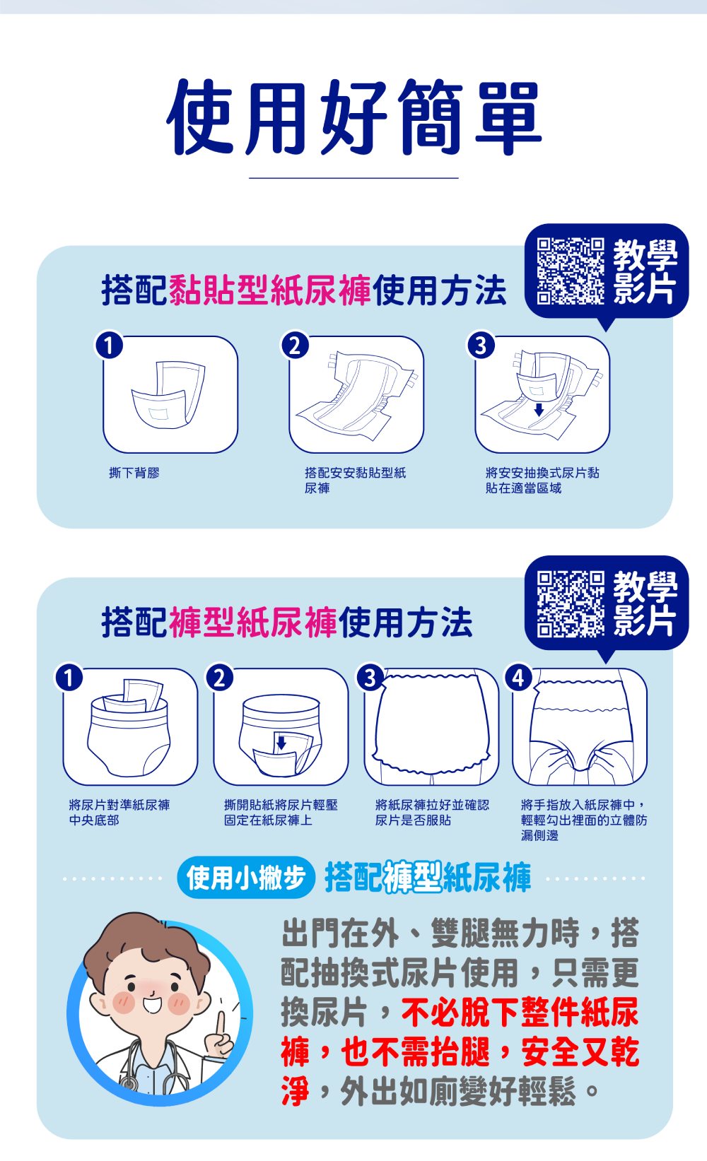 乾爽柔膚型(22x50cm):約2~3次尿量材質/成分:不織布、紙漿、SAP規格:30片/6包保存期限:3年保存方法:避免太陽直射及潮濕處產地:台灣
