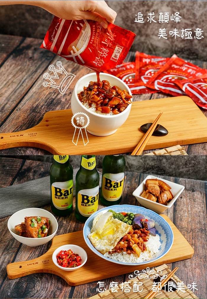 成分:豬肉、豬皮、醬油膏、冰糖、紅蔥酥、蒜頭、肉桂、胡椒