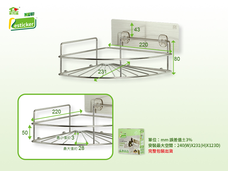 【商品名稱】家而適 廚衛扇形角落架