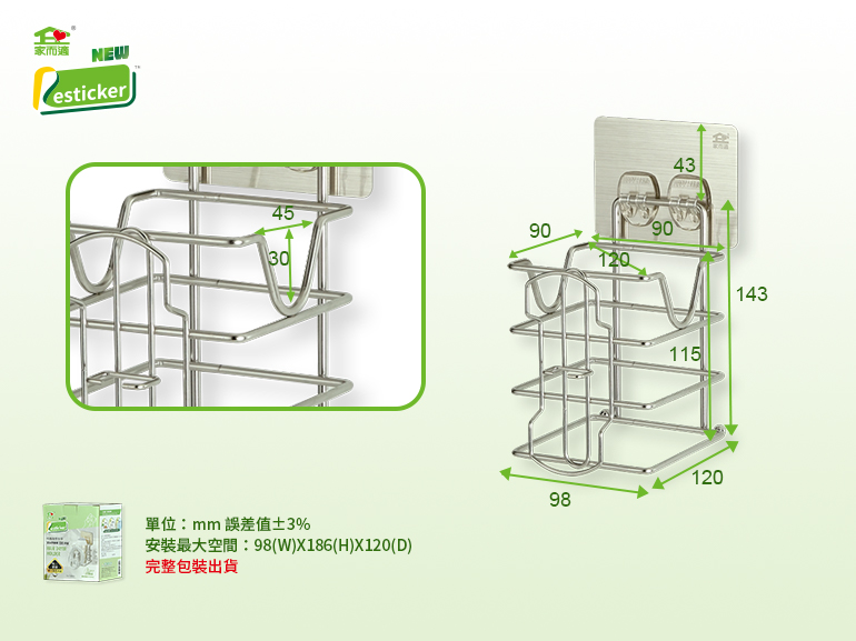 材質:鍍鉻鋼線、強黏無痕膠、PP、PC塑膠