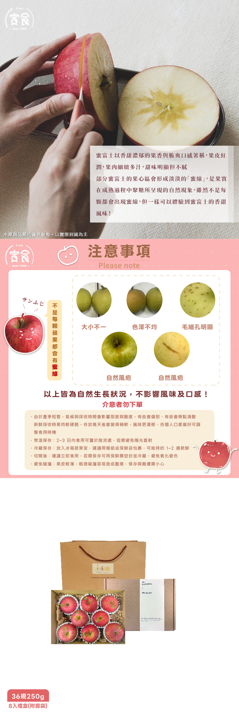 🍎 日本青森蜜富士蘋果36規250g*8入禮盒(附提袋)