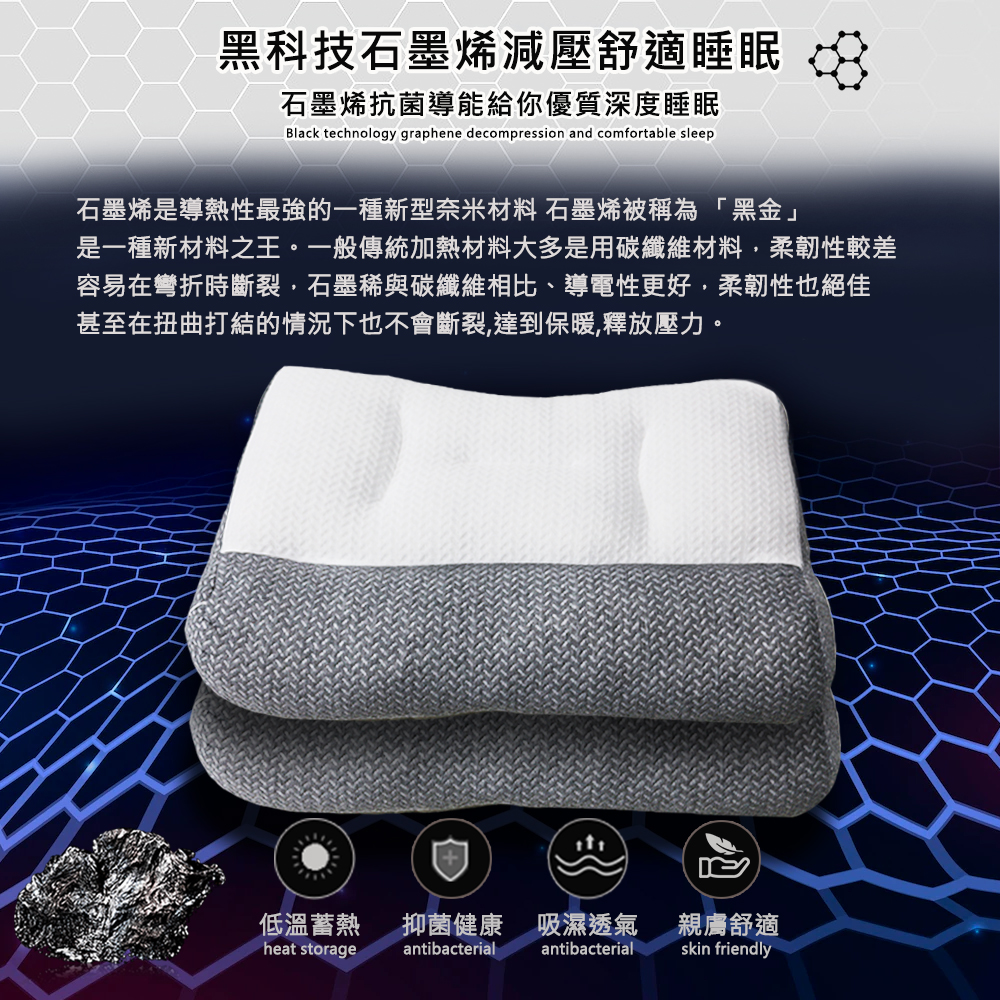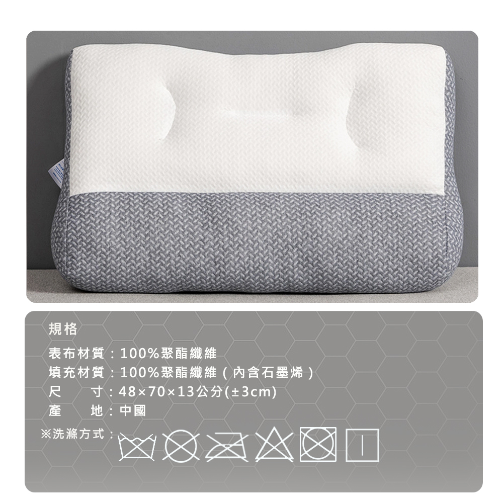 耳槽設計減少耳朵壓迫感【石墨烯減壓舒適睡眠】● 人體工學設計釋放壓力● 頸椎設計貼合頸部支撐好舒適● 耳槽設計減少耳朵壓迫感【商品規格】【包裝內容/規格】40×70×13cm±3%