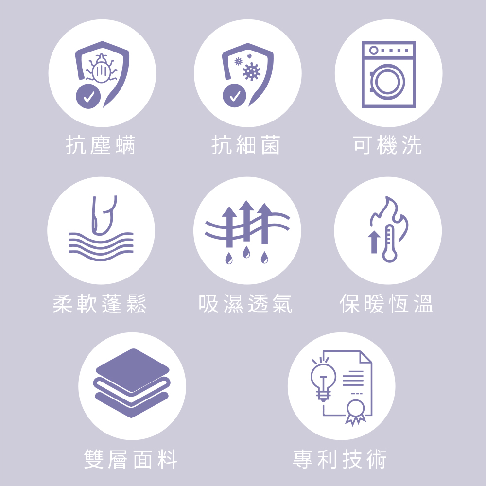 快速傳導釋熱,舒爽透氣【產品規格】大小:雙人材質:石墨稀、聚酯纖維尺寸:180x210±5%重量:1.9kg±5%產地:中國製造(台灣監製)表布材質:上層:100%聚酯纖維下層:100%聚酯纖維(含銀離子)填充物:100%聚酯纖維(內含石墨烯)