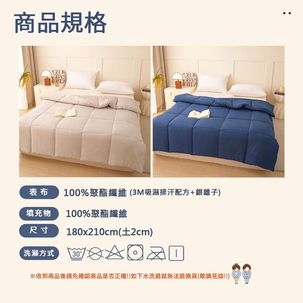 【新品上市,科技與舒適的完美選】● 3M吸濕排汗,乾爽舒適● 銀離子抗菌防護,打造健康睡眠● 絎縫定位,輕鬆潔淨好安心【商品規格】尺寸:6x7尺 180x210CM (±2CM)
