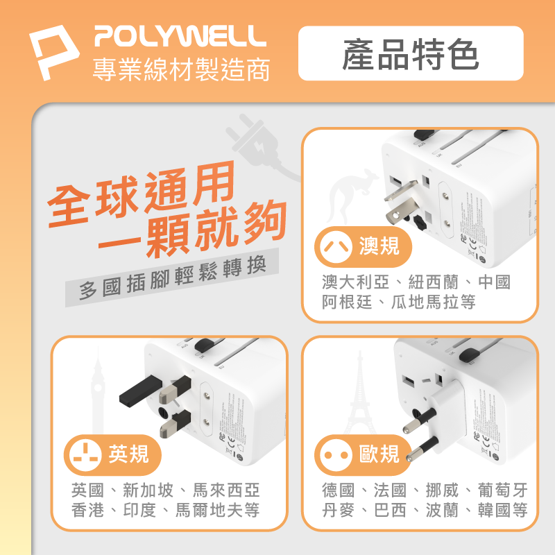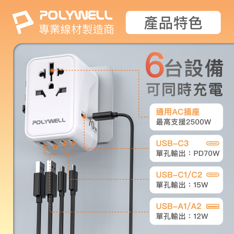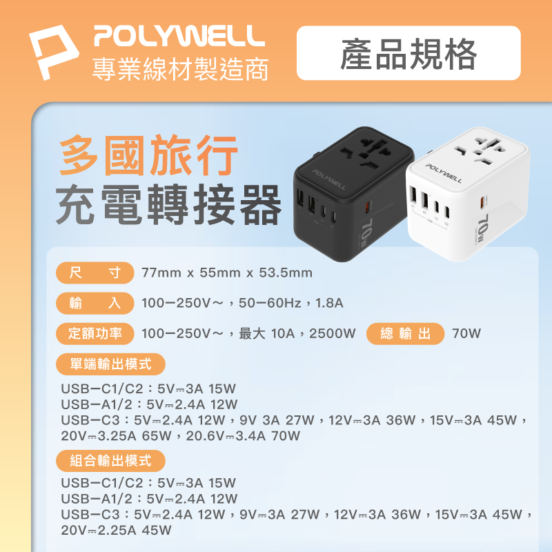 ◎ 產品:70W多國旅行充電轉接器 (無台灣/北美插頭)