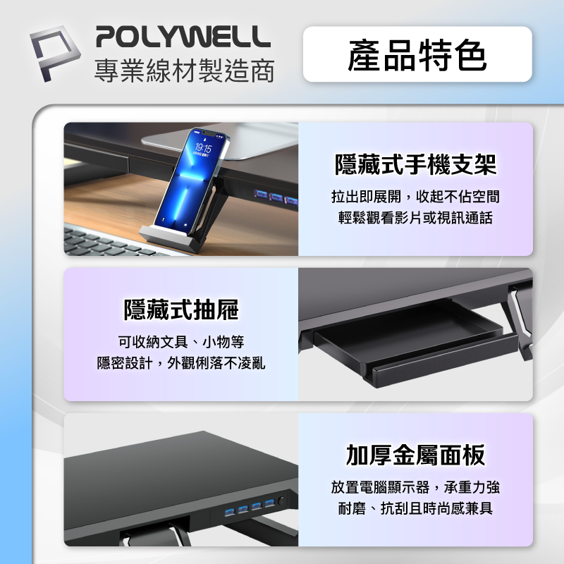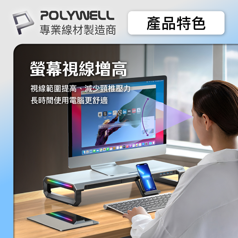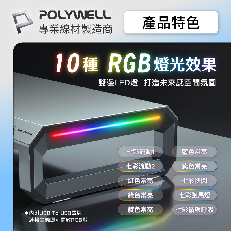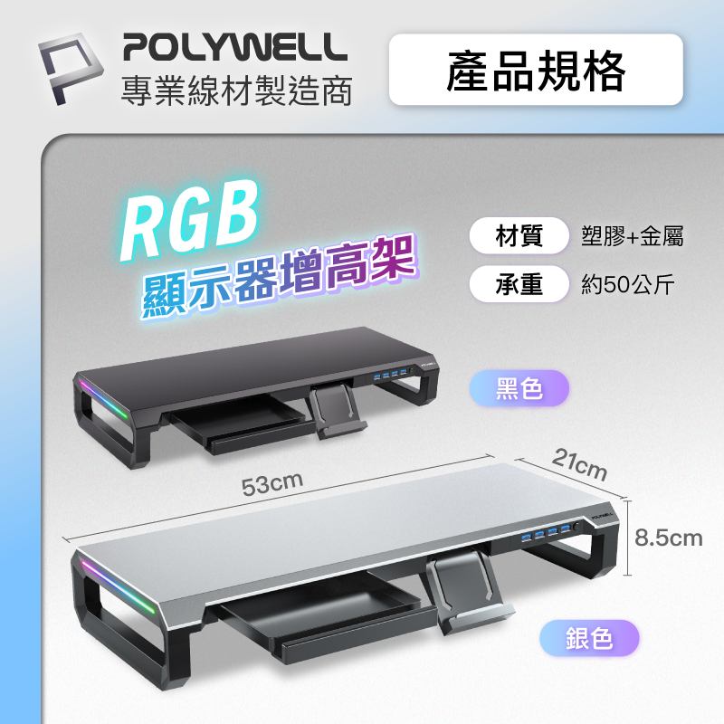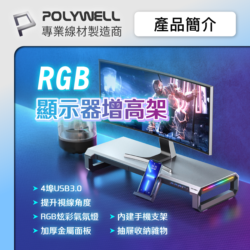 ◎ 產品:POLYWELL 電競RGB多功能螢幕增高架