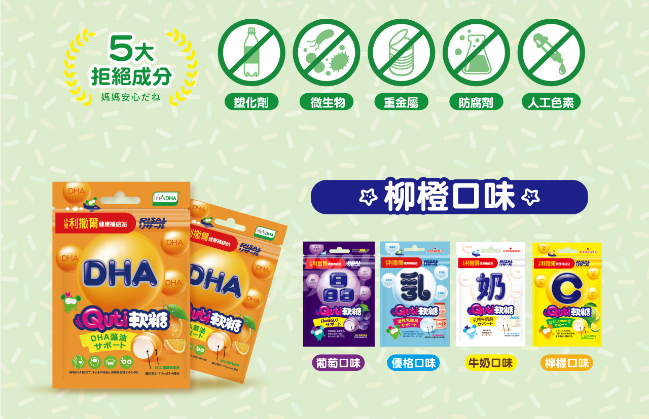 1包添加17.5mgDHA藻油每粒添加多國認證品牌大廠DHA藻油 17mg,促進兒童成長發育,品質精純,柳橙口味,美味好吃。