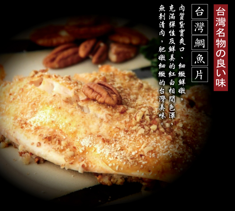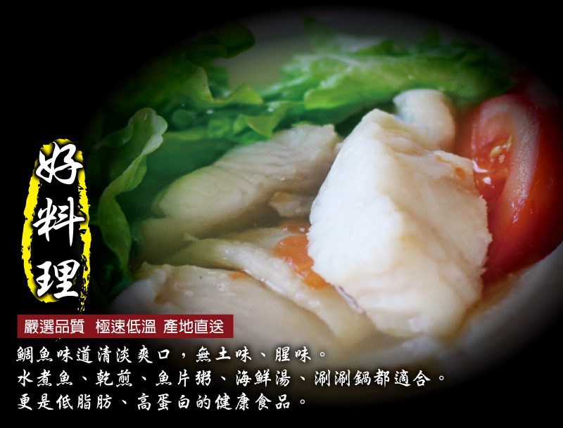 保存方式 冷凍-18℃以下食用方式 各式料理內容物成份 鯛魚熱量 可免標示每份營養成份 可免標示內容量 ( g/ml ) 100~150g/片食品添加物名稱 無產地(國家或台灣縣市) 台灣廠商名稱 豪鮮食品廠商電話號碼 07-3650350廠商地址 高雄市德豐街179號15樓保存期限 如包裝所示投保產品責任險字號 1300-04AKP0000486食品業者登錄字號 E-183128073-00000-4