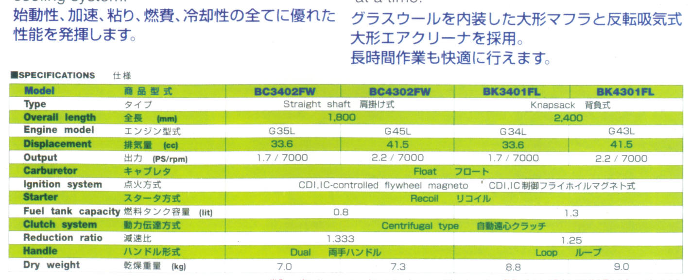 【TAKUMI】 Komatsu BC4302 Backpack Brush Cutter