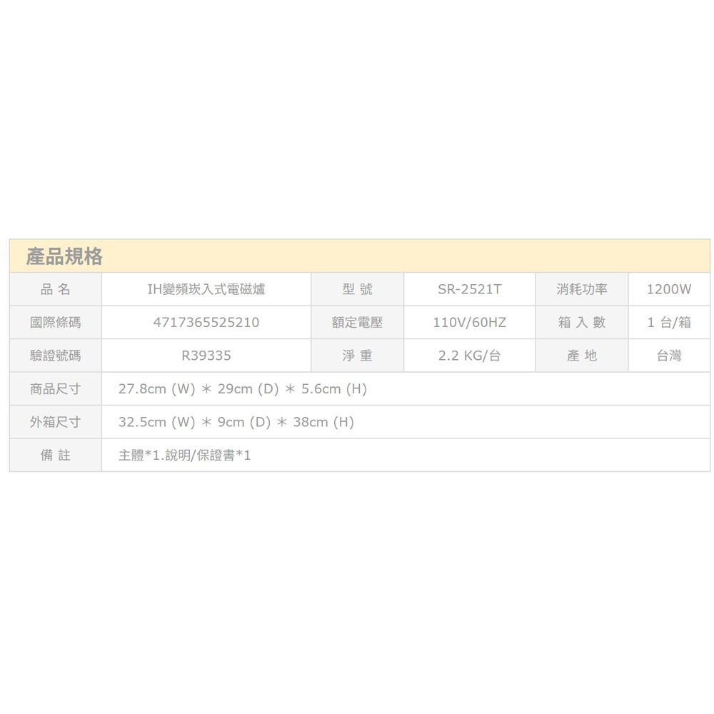 ※型 號:SR-2521T