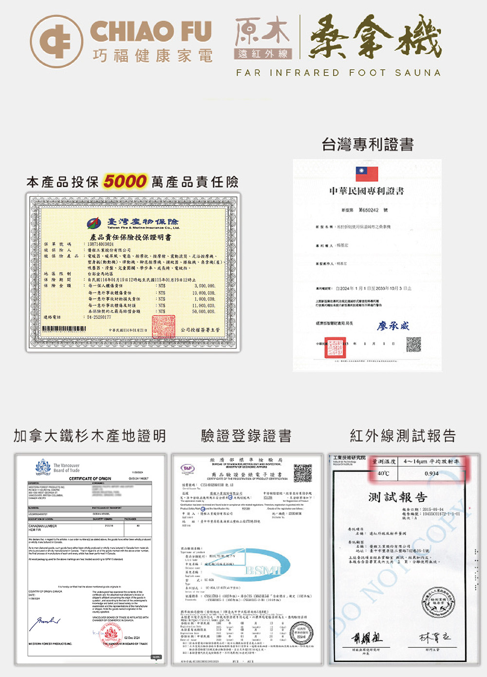 ◆獨家36顆韓式六角赭石,強化熱能吸收足底有感提升 ◆一秒拆裝,專利升級布套加寬加長,可拉至到臀部、腰部 ◆升級款單口加大保溫絨布,有效加強熱能循環◆桶身降低輕鬆出入,提升舒適度讓友善長輩使用 ◆獨家25顆六角鍺石可釋放負離子,幫助體內代謝◆加拿大進口鐵杉原木100%手工打造,釋放原木芳香◆工研院遠紅外線測試,放射率達93.4%◆經濟部標準檢驗局驗證通過 T51286◆5000萬產品責任險