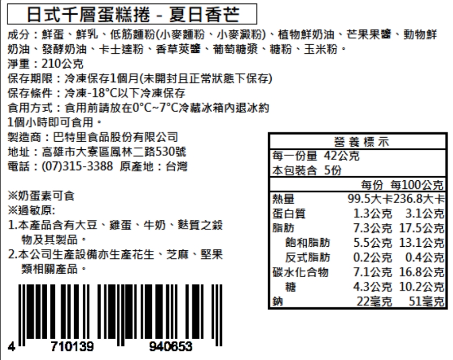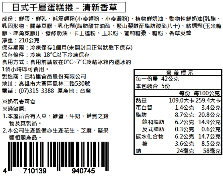 【巴特里】日式千層捲 清爽消暑綜合組 香草+可可+香芒 送爆漿奶油餐包1包