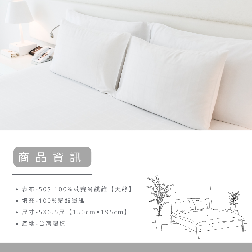 50支/ 100%純素寢飾|簡約純真,舒眠選擇