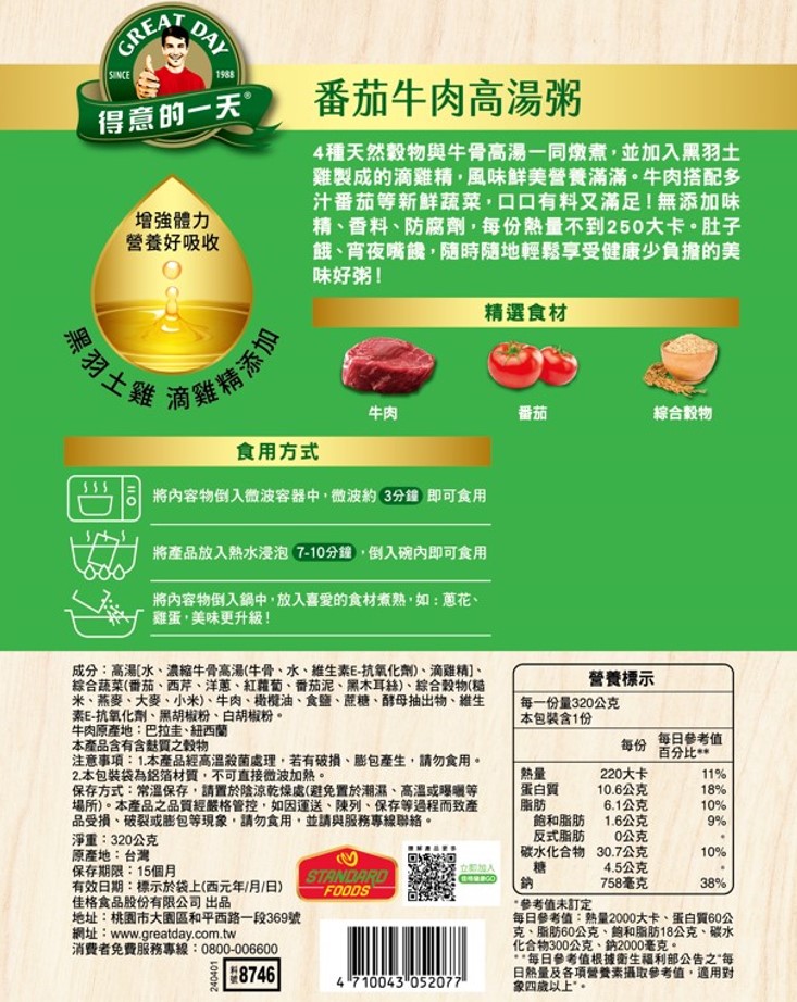 ◎Brand:得意的一天 ◎Specifications: 320g克 x 1 x 1Bag包