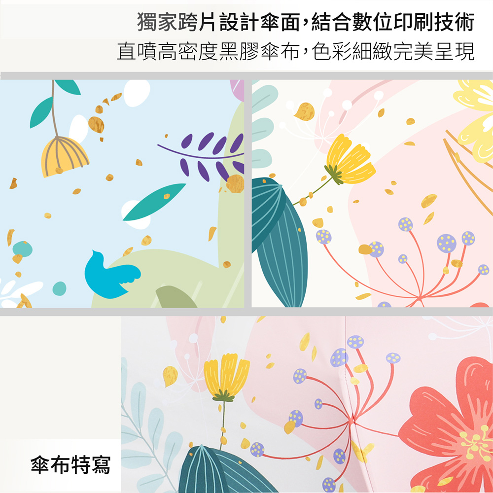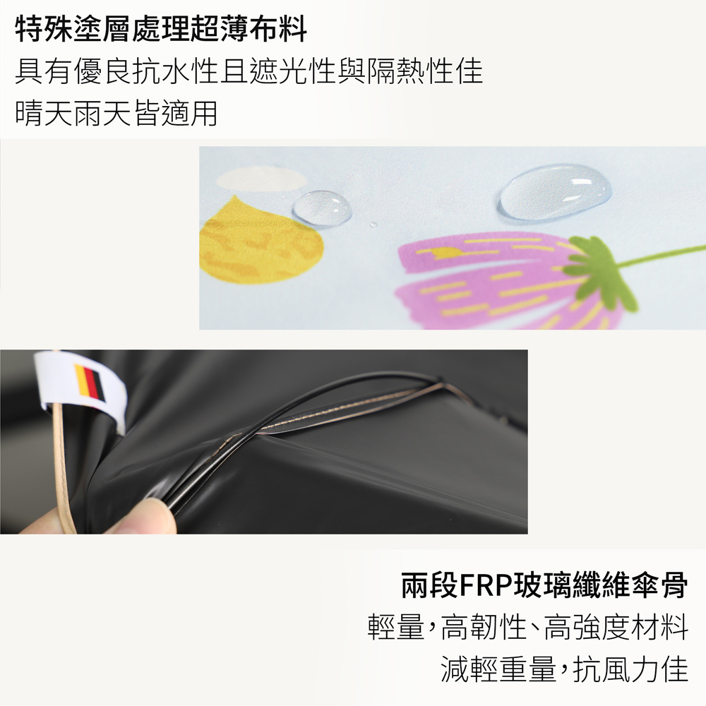 ✔️傘面跨片設計,印刷細緻✔️輕壓即收回,收傘不費力✔️全遮光傘布,隔絕熱氣