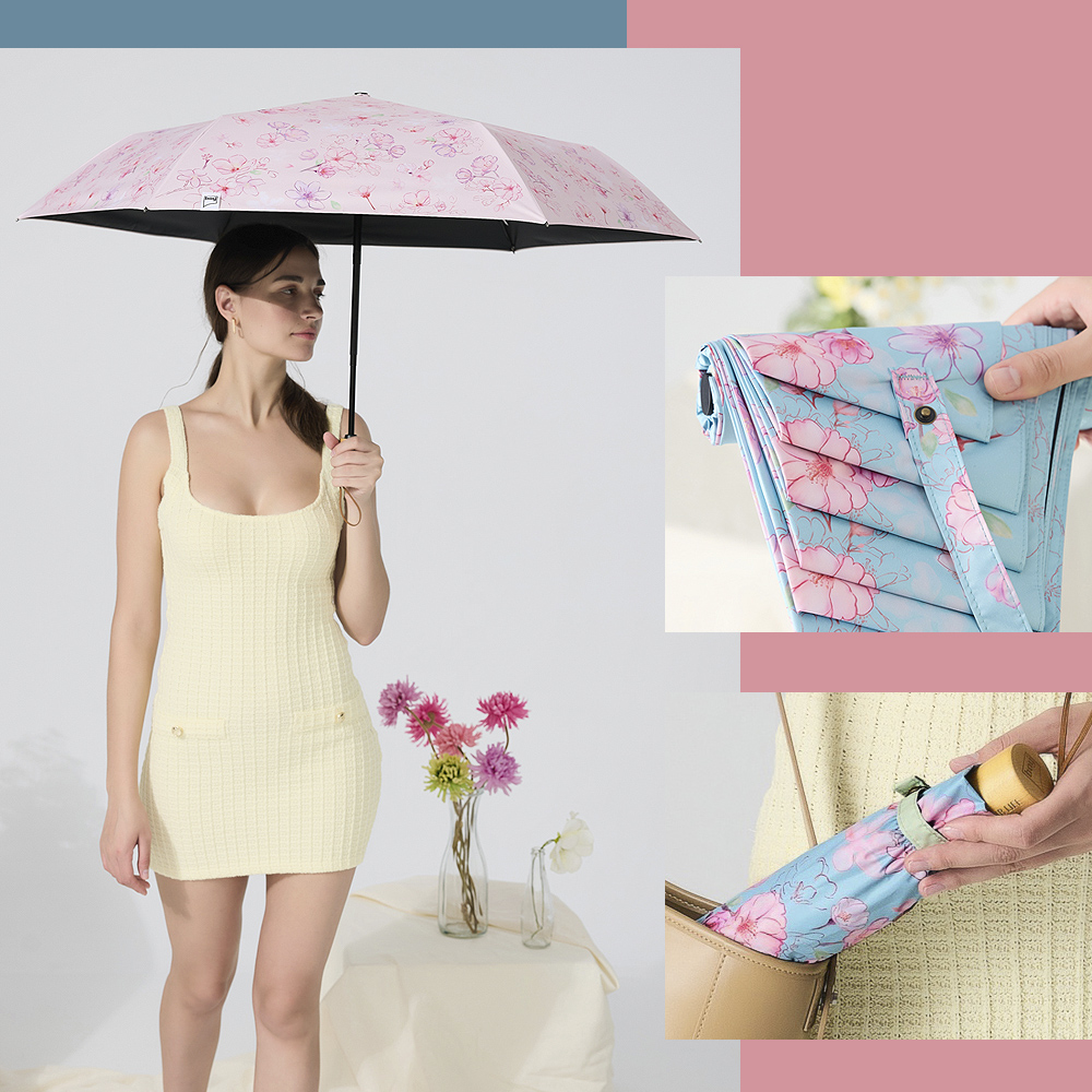 ✔️傘面跨片設計,印刷細緻✔️輕壓即收回,收傘不費力✔️全遮光傘布,隔絕熱氣