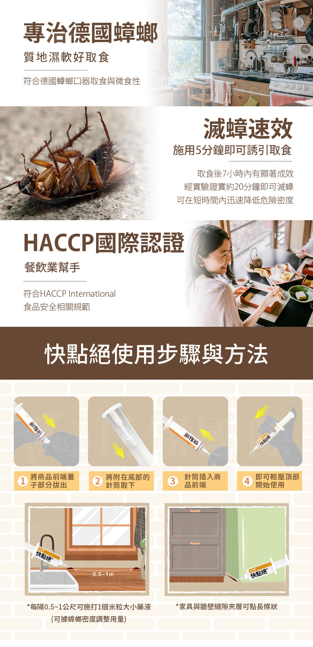 2.專治德國蟑螂 : 快點絕質地濕軟,符合德國蟑螂口器取食。
