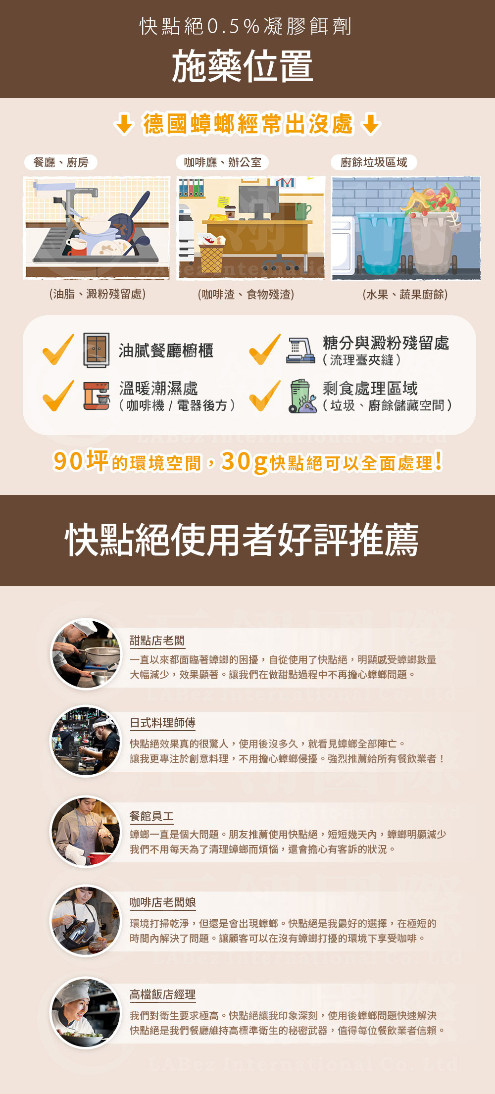 ●特別為自營餐飲業者、辦公室等室內場所打造的全新滅蟑解決方案!
