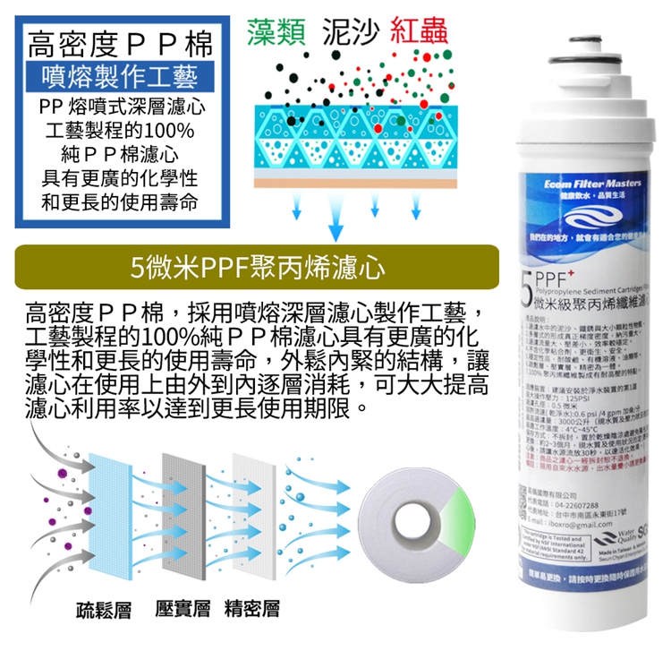 藍星系列快拆 5微米PP濾心【6支】