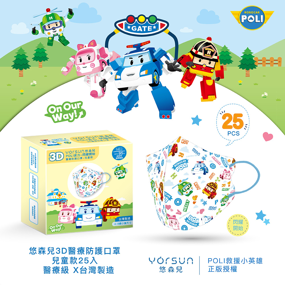 【悠森兒】POLI波力 3D立體兒童醫用口罩25入-閃耀開始