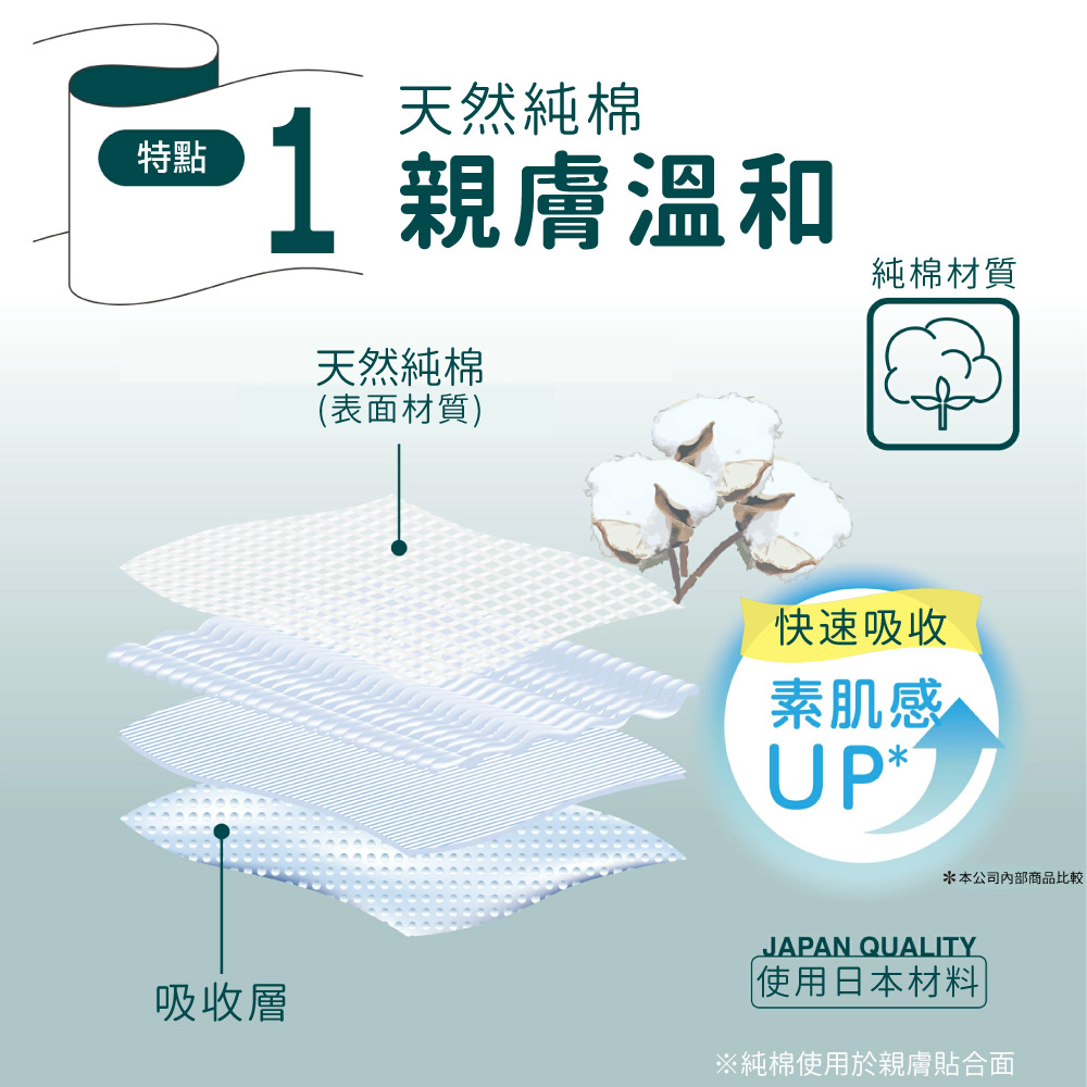 吸水材質:棉漿、吸水紙、高分子吸水材