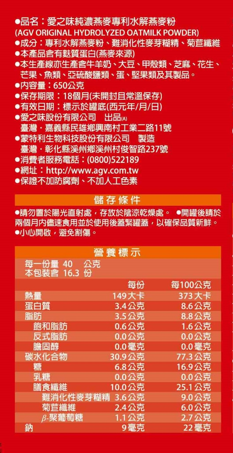 AGV ORIGINAL HYDROLYZED OATMILK POWDER