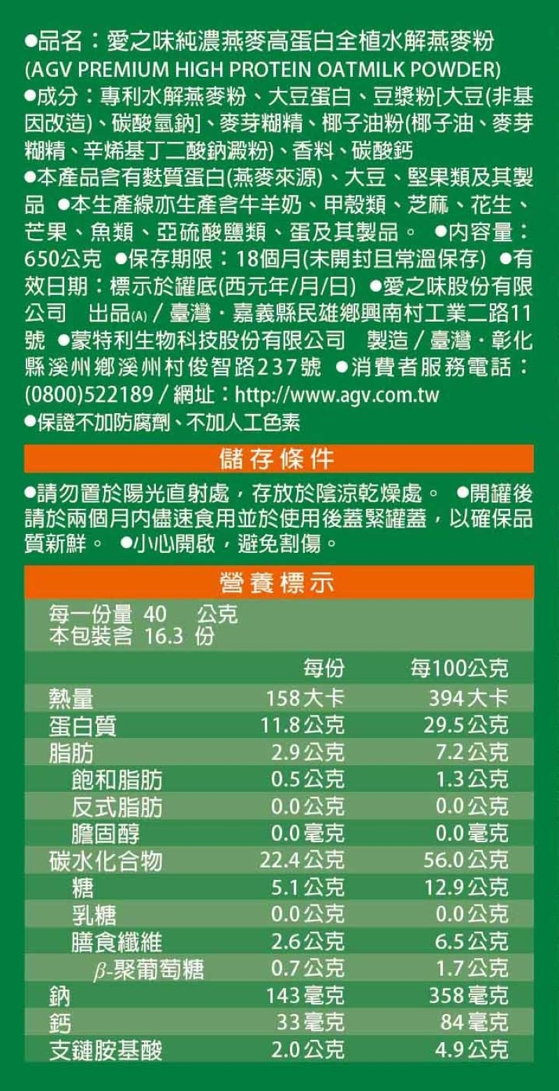 AGV PREMIUM HIGH PROTEIN OATMILK POWDER