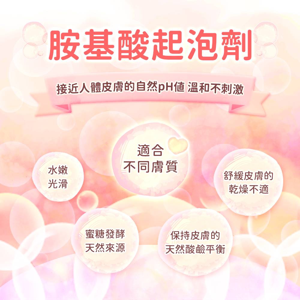 ♕胺基酸+天然植萃的雙效滋養,洗後肌膚柔嫩光滑,閃耀“美時美刻”!♕溫和弱酸性,堅持不添加皂鹼、SLS、SLES等化學成分,特殊美容後、私密處皆適用。