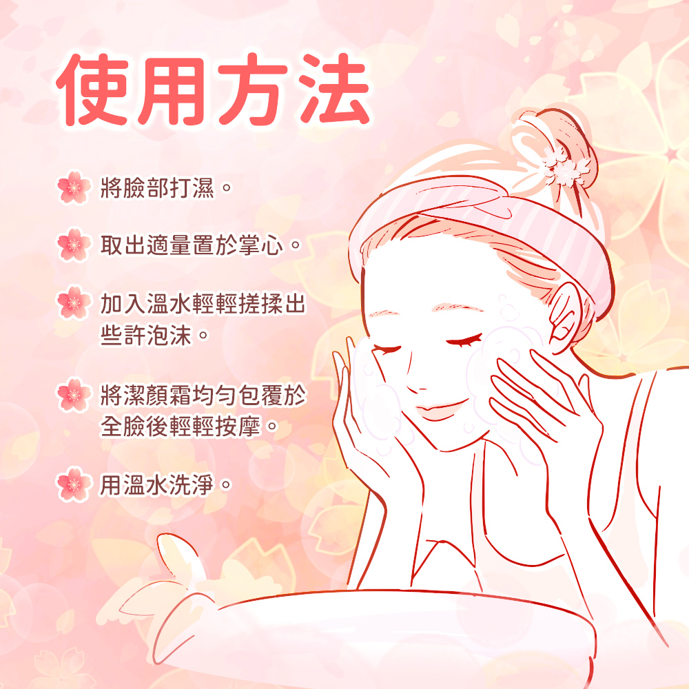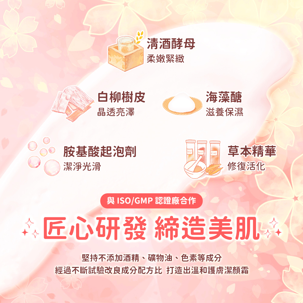 【商品特色】◉與ISO/GMP認證廠合作研發製造 ,經過不斷試驗改良成分配方比 ,打造出溫和的護膚潔顏霜。◉弱酸性pH值,適用於不同膚質,溫柔呵護肌膚,洗妹妹也適用。◉高濃度植萃成分,用量省,淡淡花香氣舒緩壓力。◉淨化毛孔、去除髒污、促進角質更新代謝。◉調理肌膚油水平衡,不易乾澀緊繃,展現肌膚自然光澤。◉天然蜜糖發酵胺基酸起泡劑,保濕滋潤肌膚,讓膚觸平滑水嫩。【使用方法】 ◉將臉部打濕。 ◉取出適量置於掌心。 ◉加入溫水輕輕搓揉出些許泡沫。◉將潔顏霜均勻包覆於全臉後輕輕按摩。◉用溫水洗淨。【商品規格】◉主要成份:胺基酸、海藻醣、白柳樹、清酒酵母。◉主要用途:清潔毛孔、調理肌膚、使肌膚散發自然透亮光澤。◉適用肌膚 : 所有膚質適用。◉容量: 50g◉保存期限 : 三年;效期至2027.11.25◉保存方式:常溫保存,避免潮濕、陽光直射或置於高溫處。◉產地: 台灣【注意事項】◉七天鑑賞期為猶豫期非試用期,商品須在完整、未使用,並且可以恢復原包裝的狀況下,才能進行退換貨。◉產品出廠前己經過嚴格品質測試,但不排除可能因皮膚差異所引起的個別不適,如有不適,請停用並諮詢皮膚科醫生。