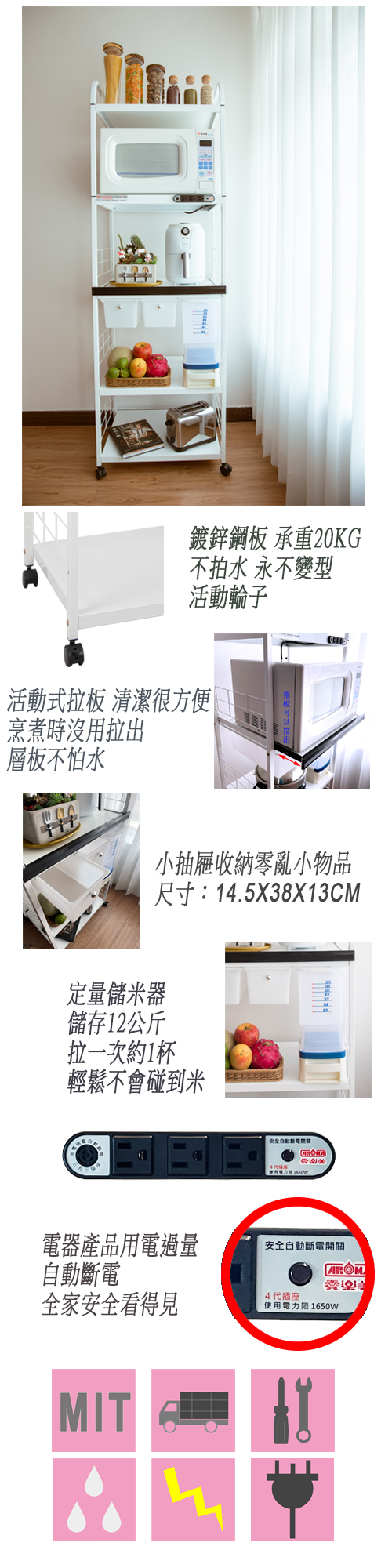 1pull-out panel, 2 drawers,5-tier rice bucket storage rack