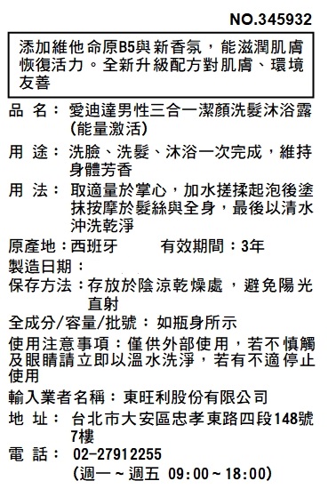 ◎Brand:愛迪達 ◎Specifications: 400ml毫升 x 1 x 1PC瓶