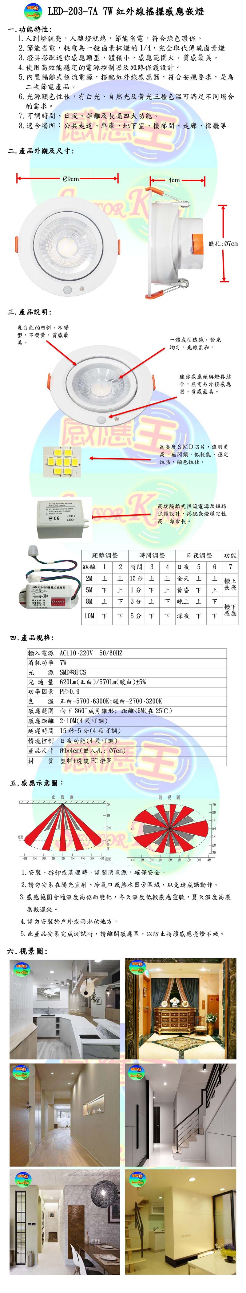 LED-203-7A 7W Infrared Swing Sensor Recessed Light (White Light - Full Voltage)