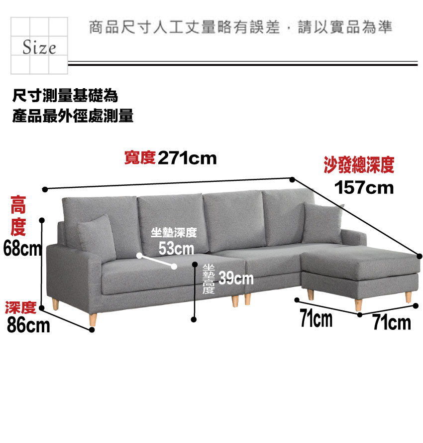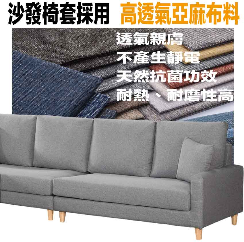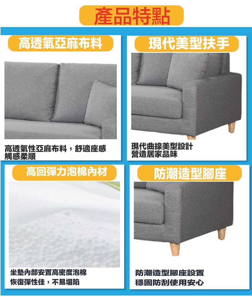 採用內部實木板材框架+防潮木紋腳座+透氣亞麻布+高回彈力加厚泡棉等安心材質製造